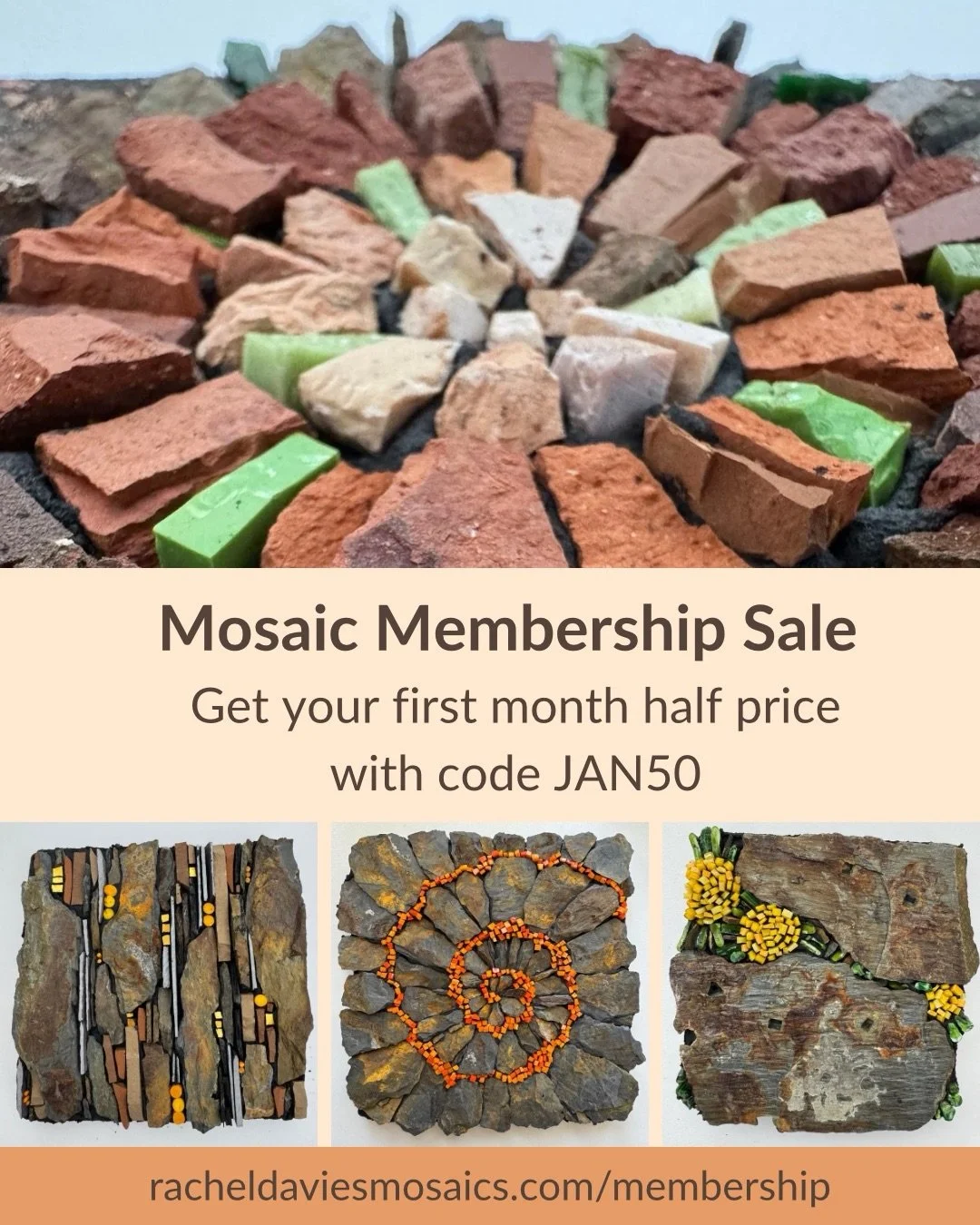 I teach a monthly live class inside my membership programme. Join the community for lots of inspiration and tips for making mosaics