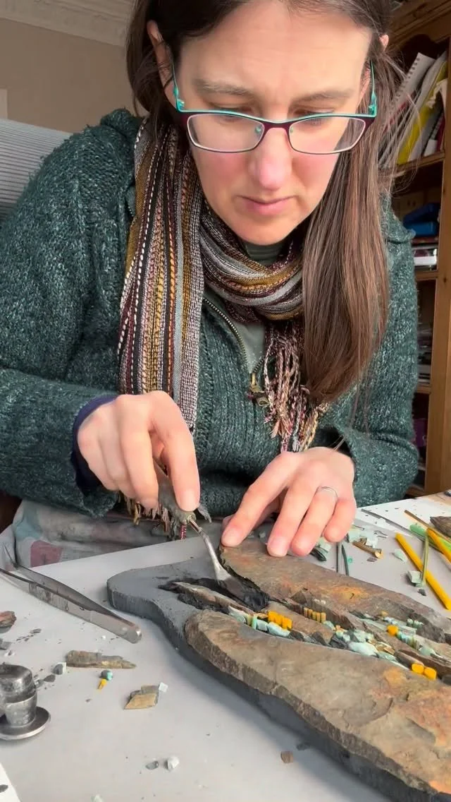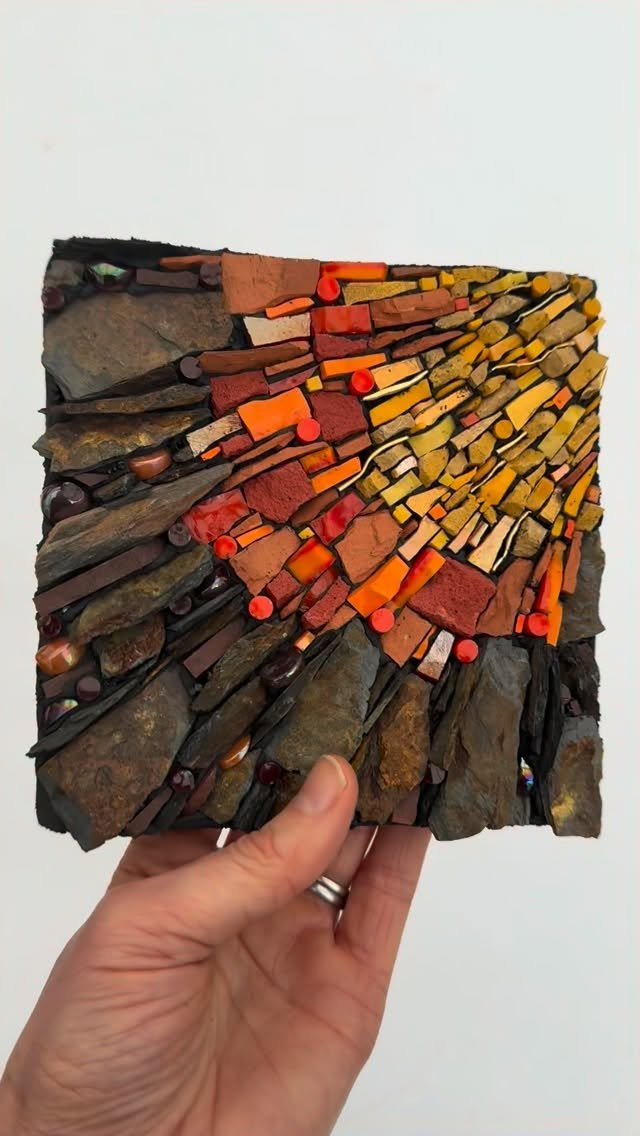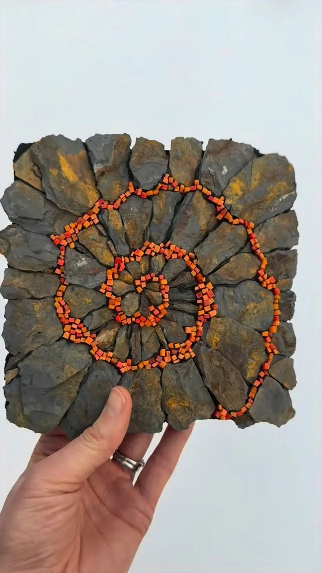I create contemporary artworks with slate, stone and glass, and provide learning opportunities for those that want to improve their mosaic knowledge and skills.