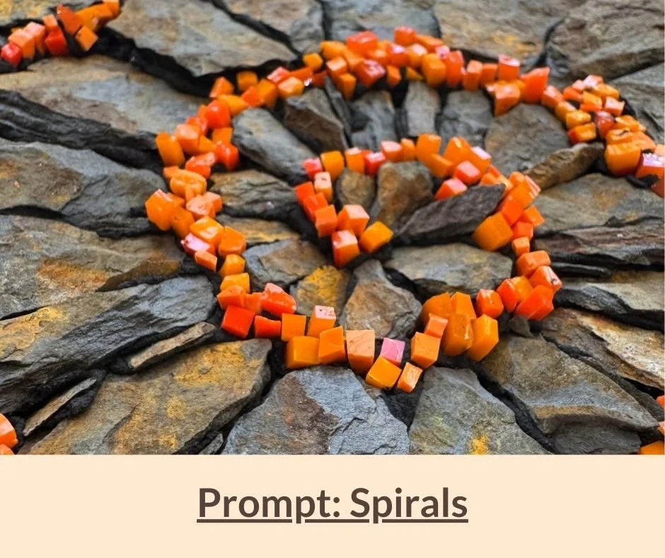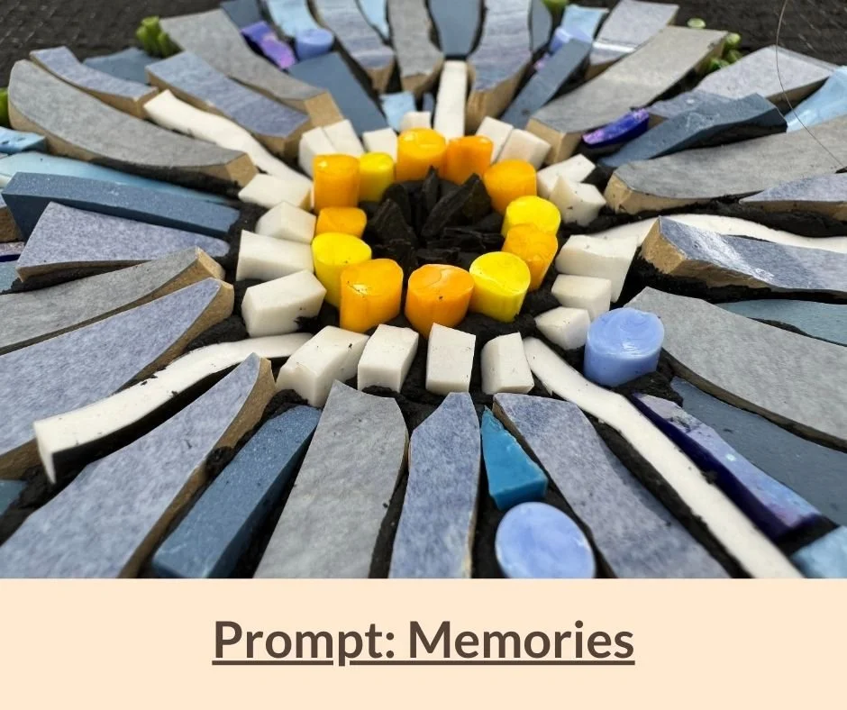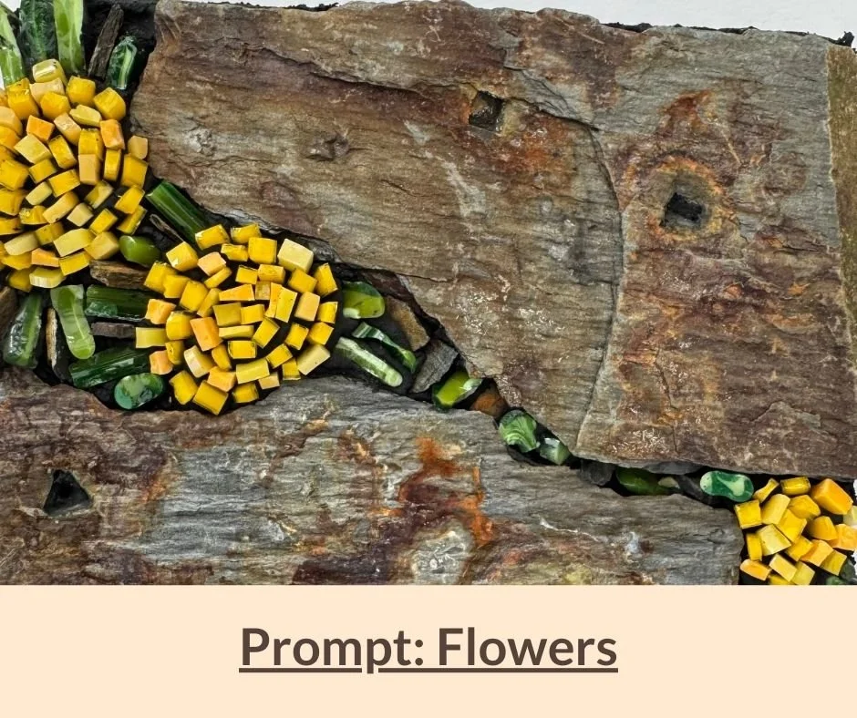 Prompts give you a small, focused task to work on, reducing the overwhelm and encouraging you to get creative and to try new approaches to mosaic making.